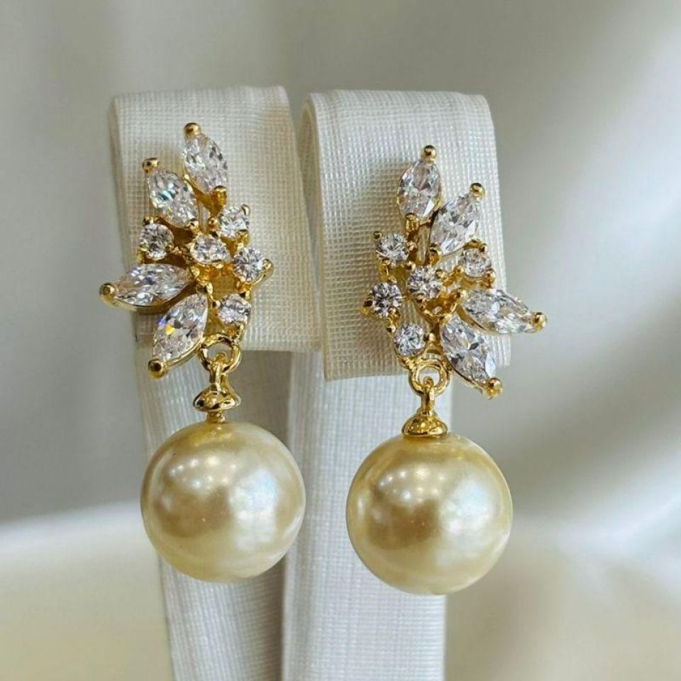 Brinco navetes com pérola pendurada